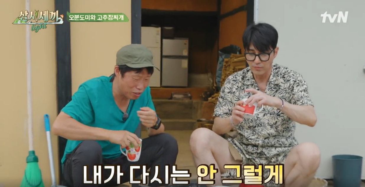 또한, 차승원과 유해진의 식사 준비 역시 눈부셨습니다. 차셰프 차승원의 진두지휘 아래, 유해진은 빠른 손놀림으로 보조하며 금세 먹음직스러운 한 상을 완성해냈습니다. 잠시 김치 투척 사건으로 두 사람의 사이가 서먹해지기도 했지만, 막걸리 한 잔으로 화해하는 모습이 훈훈한 웃음을 더했습니다.