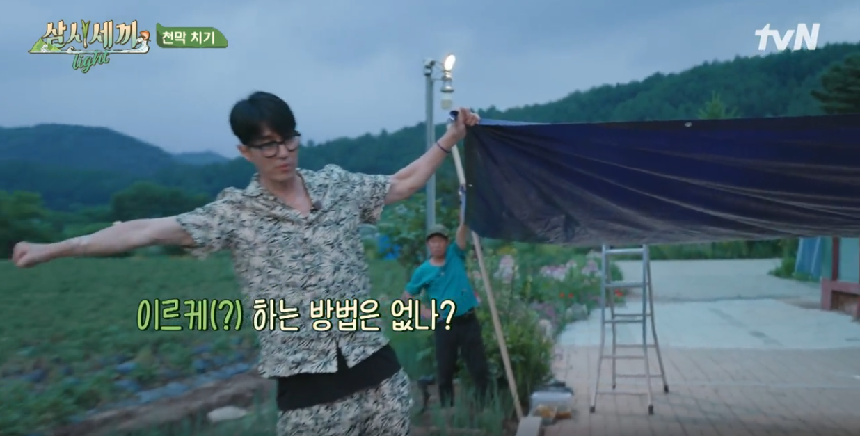 방송 중, 두 사람이 공들여 설치한 천막이 바람에 무너지는 돌발 상황도 발생했습니다. 이름까지 지어줄 만큼 자랑스러워하던 천막이 무너지자 차승원과 유해진은 망연자실했지만, 곧 보수공사를 시작해 이전보다 튼튼한 천막을 완성, 시청자들의 감탄을 자아냈습니다.