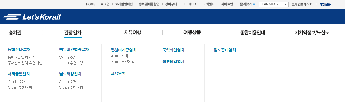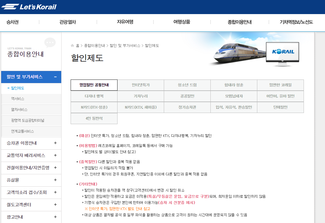 한국철도공사, 레츠코레일, 승차권 예매, 기차여행상품, 운행정보 안내