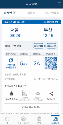 - 예매한 승차권의 취소 및 변경도 앱 내에서 간편하게 처리할 수 있습니다. 취소 수수료에 대한 정보도 확인할 수 있어 유용합니다.