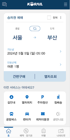 - 원하는 출발지와 도착지를 입력하고, 날짜와 시간을 선택하여 기차를 예약할 수 있습니다. 예약 후에는 모바일 승차권을 생성하여 스마트폰에서 직접 승차할 수 있습니다.